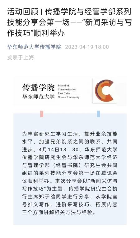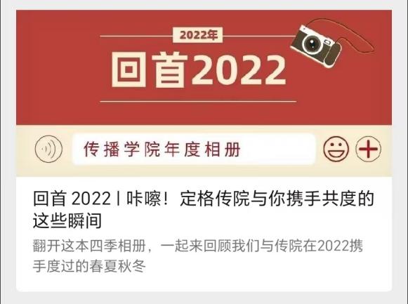总结学院年度新闻,跟进学校各项活动。我们在年末总结传院的重要事件,制成四季相册,回顾学子与传院在2022携手度过的春夏秋冬。此外,我们还积极发挥专业优势,与经管学部合办技能分享会,也参与到2022研究生学术文化节等校级重要活动的宣传工作中,达成了较好的传播效果。