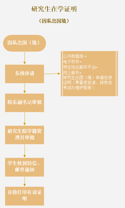 5.出国(境)事务:先到网上申请,审批通过后,到自助打印机上打印。内容为中英文版,已加盖研究生院学籍证明专用章。