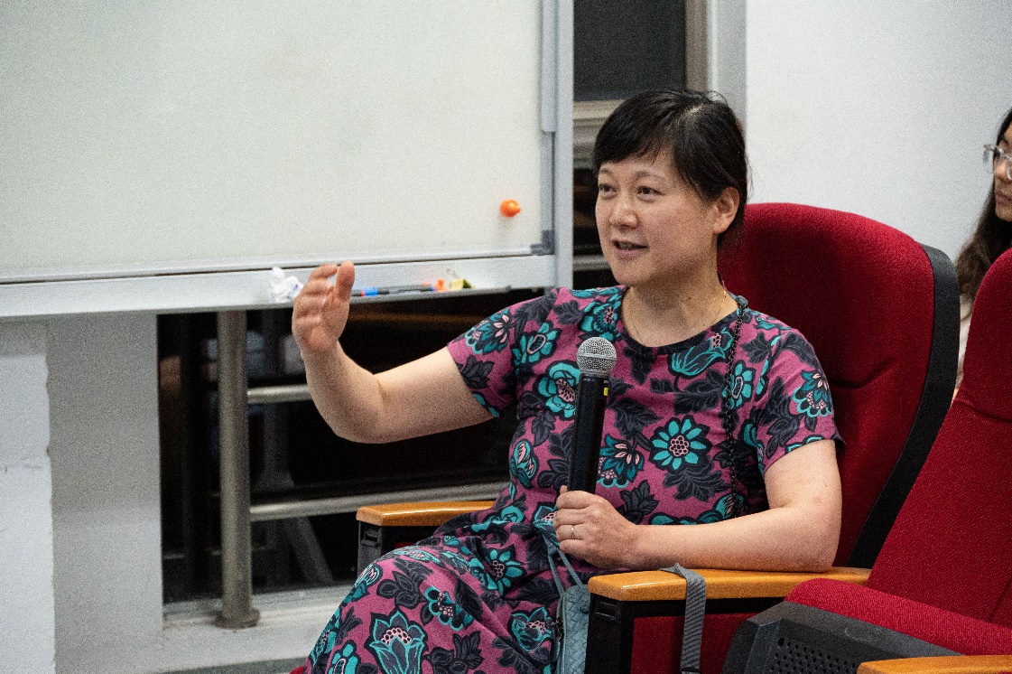 首先,关于影片中四次评弹片段的加入,韩君倩导演揭秘,评弹这一要素在前期创作和拍摄中并不存在,而是在后期剪辑的过程中,拍摄现场不断出现的评弹背景音给予了她这一灵感。“(评弹)既有一种间离效果,又有作者的视点,还有一种写意的东西。”韩导认为,评弹不仅仅在电影中起到了叙事的作用,还可以为塑造人物形象服务。与此同时,韩导还分享了为评弹赋词的曲折有趣的故事。让学生们更加深入地体会到了评弹这一“神来之笔”的“诞生”过程。