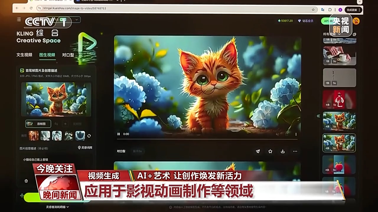 戴着墨镜的熊猫在雪山下演奏摇滚乐,女孩手捧金鱼,鱼儿在手中游动。不需要摄像机拍摄,不需要后期制作,只需在AI视频生成模型中,输入指令文字,或上传图片,就能得到活灵活现的视频内容。一个五秒长的视频,一两分钟就能制作完成。目前,在影视制作、视频动画等多个领域,我国已有多个AI视频生成大模型。
