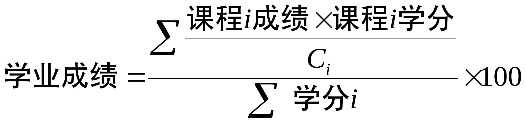 为同专业候选人同一课程i的成绩最高分,课程i学分为研究生培养计划规定的课程i的学分数。