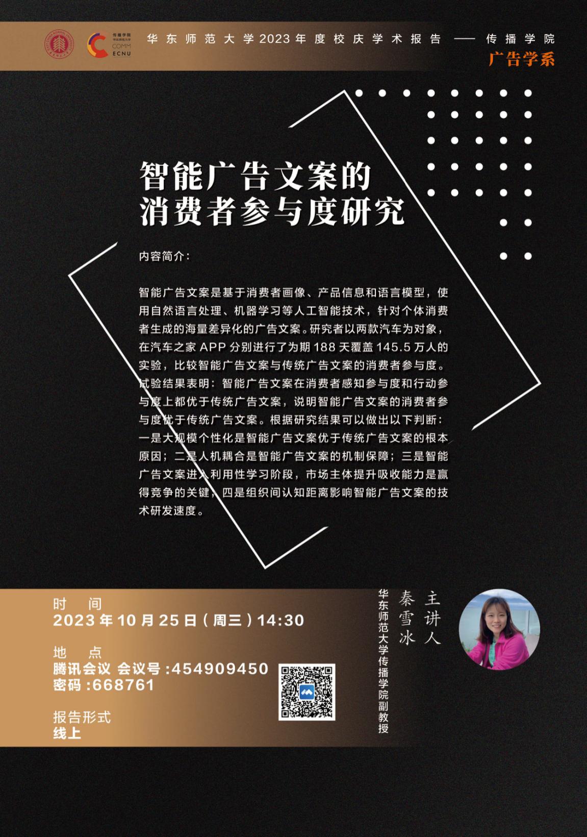 校庆学术报告会 | 秦雪冰:智能广告文案的消费者参与度研究