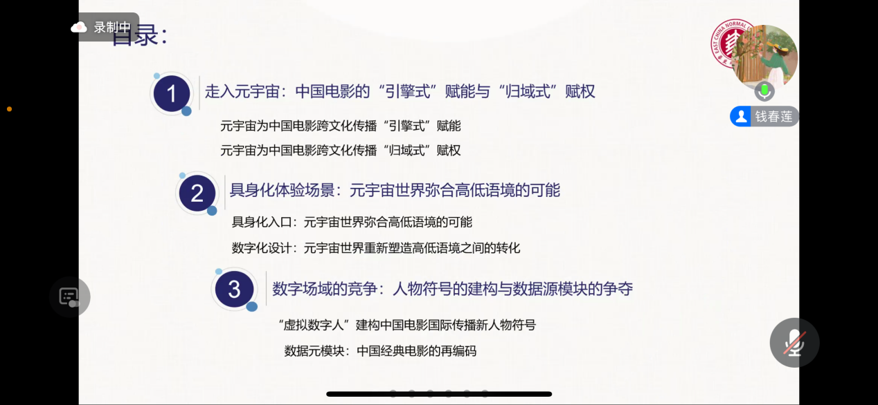 2023年10月26日,嘟嘟成人网 的钱春莲副教授以“变革与争夺:中国电影跨文化传播的元宇宙模式”为题开展线上讲座。
