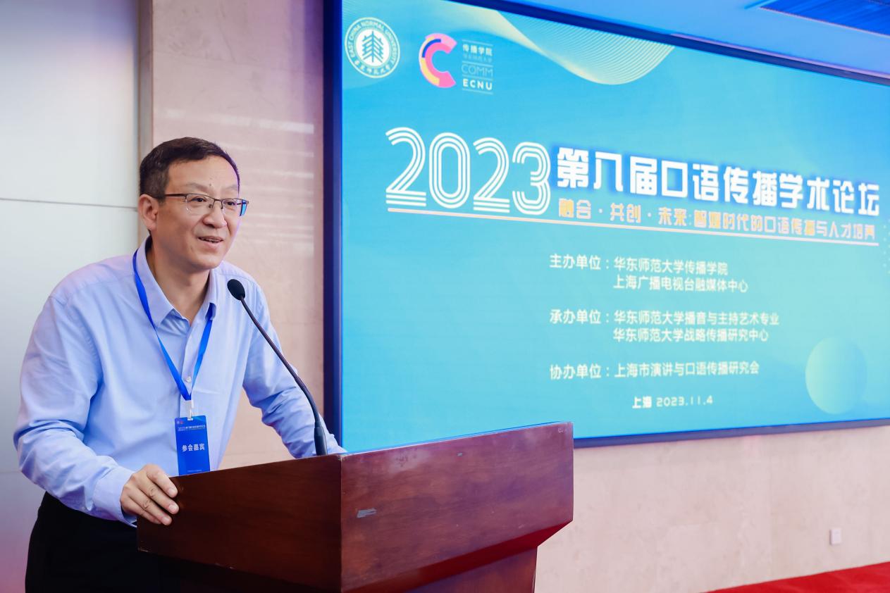 王峰在致辞中指出,人工智能、元宇宙、Chat GPT等大模型、新技术的助力,使语言交际的环境发生了重大而深刻的变化,传媒行业进入了融合共创的新阶段。在新文科的发展态势下,培育具有跨文化传播能力的口语传播人才,成为了时代赋予的新课题。八年来,口语传播学术论坛一直致力于探求媒介深入融合、讲好中国故事,王峰表示,期待参加本届论坛的各位学者,能够针对口语传播领域的学科前沿和焦点问题,给出富有见底的思考和观点,为口语传播学科的丰富与发展助力。
