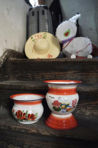 第一次遇到痰盂是她刚到上海租在马戏城附近时。“在周围闲逛,见到了这种‘古老’的中国物品。”宇山纺说,“在日本,如果有痰盂这个东西,上面肯定不会画这种图案。”鸳鸯、荷花、牡丹、囍字,这些纹样与痰盂的功能呈现出巨大的反差。在她看来,这种反差体现出中国人总能够以艳丽的姿态对待平庸的日常。
