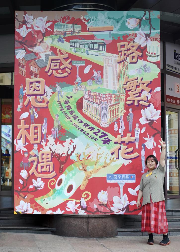 5月30日,宇山纺在伊势丹门口的海报前合照