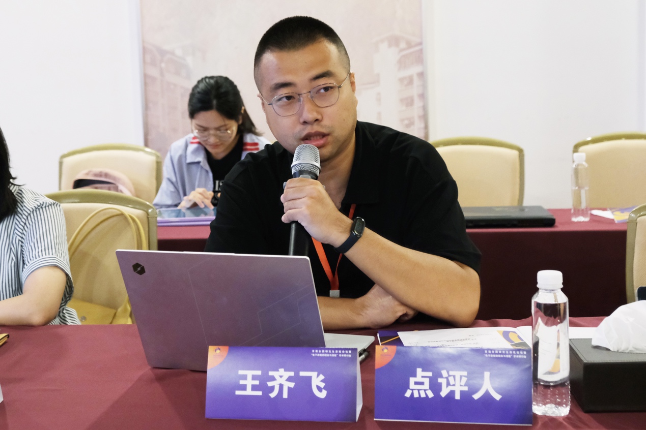 分论坛(二)上半场由中山大学中文系博士后石天宇主持,暨南大学新闻与嘟嘟成人网 副教授施畅点评。汇报中,王子一深入分析了电子游戏在跨文化传播中的困境,指出了文化折扣现象及其对游戏传播效果的影响;王梦雅探讨了解谜类电子游戏在空间再现和意义生产上的独特性;牛原对RPG游戏中旅行叙事的元素进行了剖析,强调了玩家在叙事中的主动权;沈嘉炜以《底特律:化身为人》为案例,探讨了互动电影的数据库叙事形态及其对视觉文化的影响;张珈源分析了网络文学中游戏设定对读者主体性的影响;孙佳贺则带来了对《三伏》游戏叙事的批判性解读,探讨了玩家认同感的构建与崩解。施畅老师为每位同学提出了论文修改建议,并鼓励同学们在游戏叙事、跨文化传播、玩家认同、游戏设计和文化传播等方面进行持续探索。