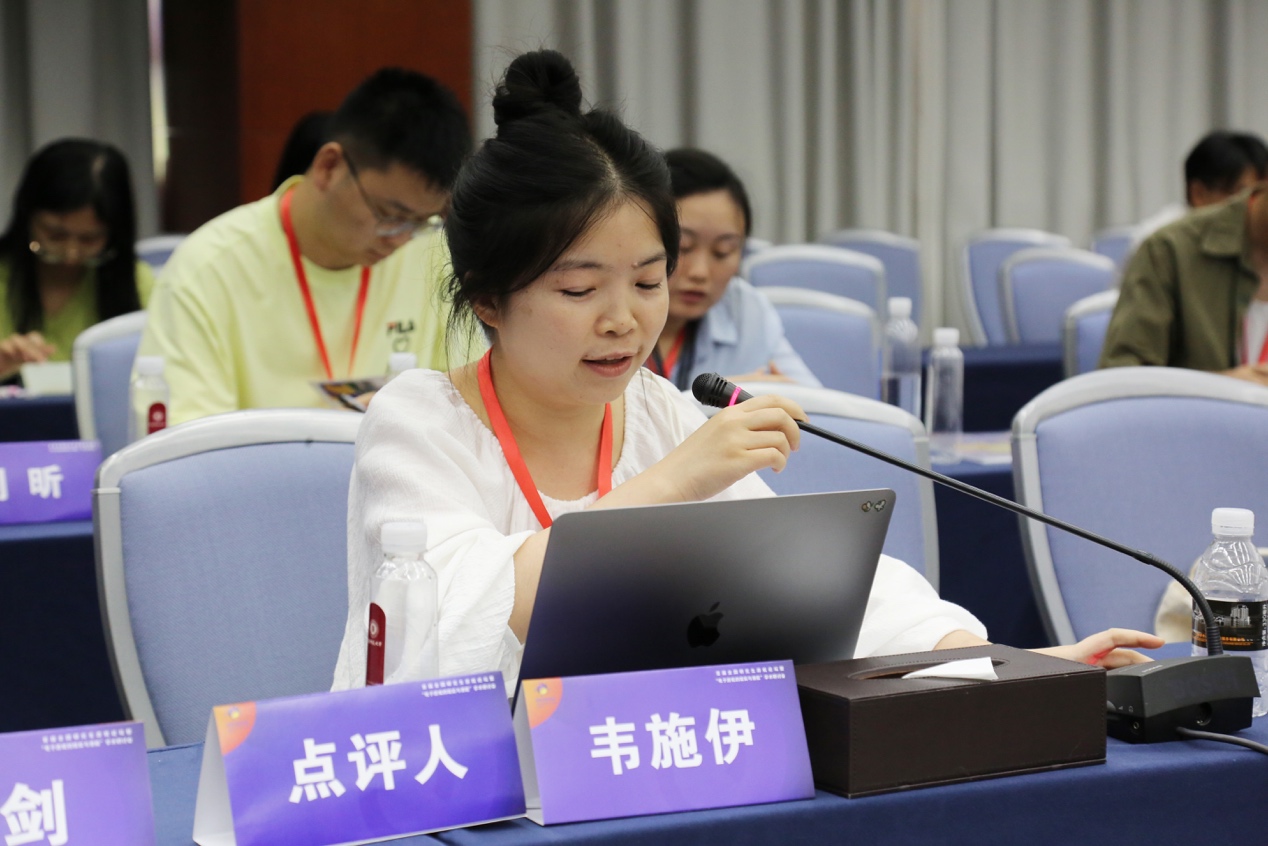 下半场由嘟嘟成人网 中文系博士研究生刘家夷主持,广州大学人文学院讲师韦施伊老师点评。汇报中,詹莉琦运用“节奏分析”探讨了玩家身体异化及其调整过程;杨奕讨论了元宇宙中身体问题的多维度以及对人工智能的价值追求;李香桦将“虚构悖论”引入游戏,强调了游戏创造的虚拟身体对身份的影响;李玫萱认为电子游戏扩展了电影身体的概念,通过游玩过程激发全身感知;罗宇昕关注数字时代主体性冲突对现实身体的影响,并提出促进青少年健康身体观念的建议;潘鹏程则提出电子化身作为主体观察者的概念,认为这有助于自我生命的安顿。韦施伊老师肯定了汇报人对分析考察对象的细致区分,赞赏本组汇报人在捕捉关键概念上的敏锐性,并对汇报人提出了加强研究结论的要求。