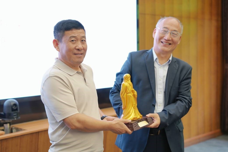 成立仪式上,钱旭红校长与嘉宾共同为中心揭牌。青铜质地的老子雕像在会场中央静静伫立,见证着从学术研究到文明传播的跃迁。函谷关历史文化遗产保护中心赠送的老子雕像,与华夏老学研究会捐赠的300余册历代《道德经》文献交相辉映,勾勒出老子思想传承的时空脉络。