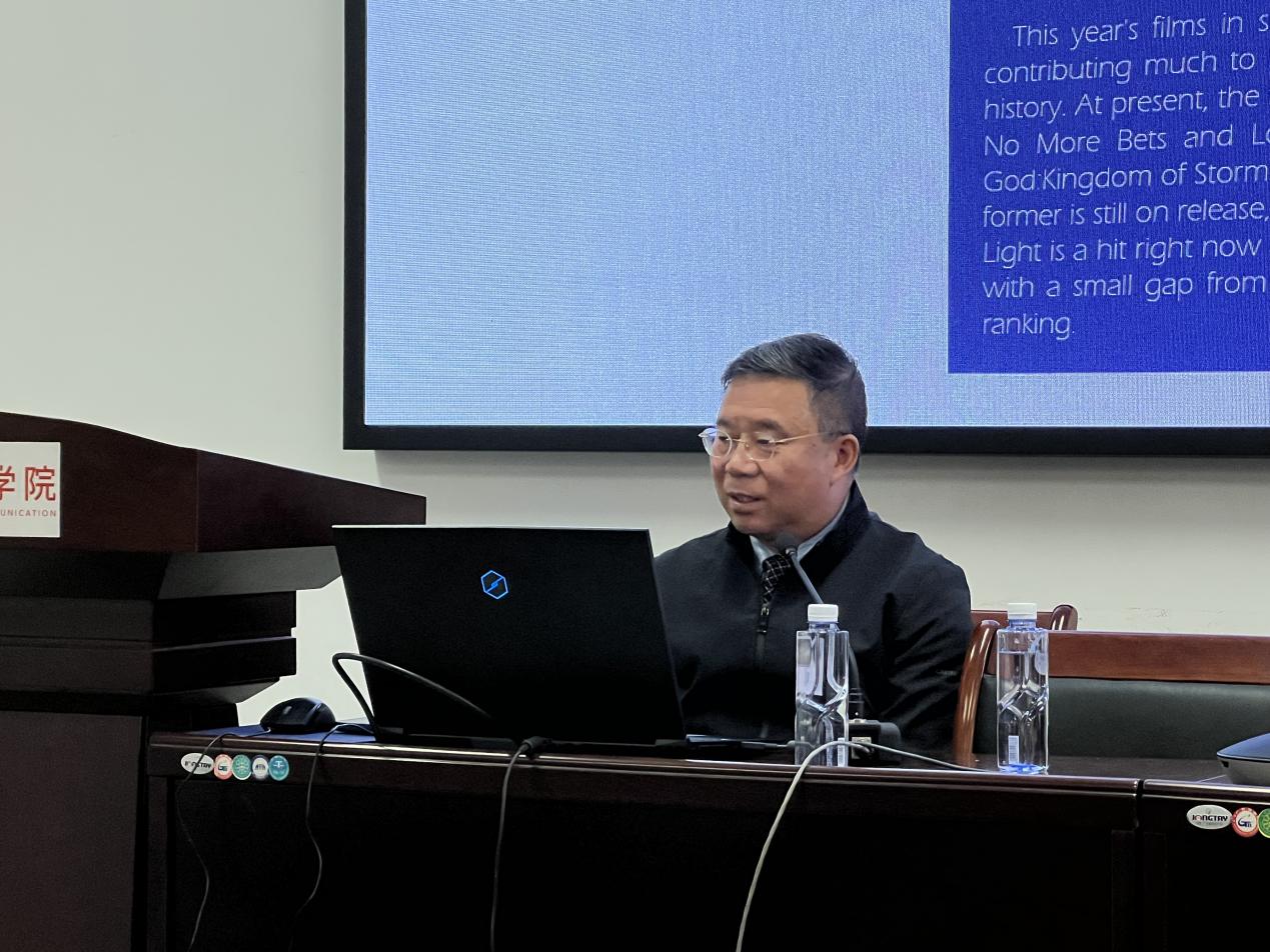 讲座伊始,历震林教授以春节档和暑期档为例,向大家介绍了2023年度中国电影市场的基本状况,指出2023年中国电影市场有向好的态势,尤其是以《满江红》、《流浪地球》为代表的春节档影片分别暂居票房榜的冠亚军。暑期档也涌现出一批类型多样的爆款,如《孤注一掷》、《消失的她》等类型片助力暑期档总票房刷新中国影史最高纪录,可见存量观众与存量市场,即中国电影市场发展的基本面都还存在。