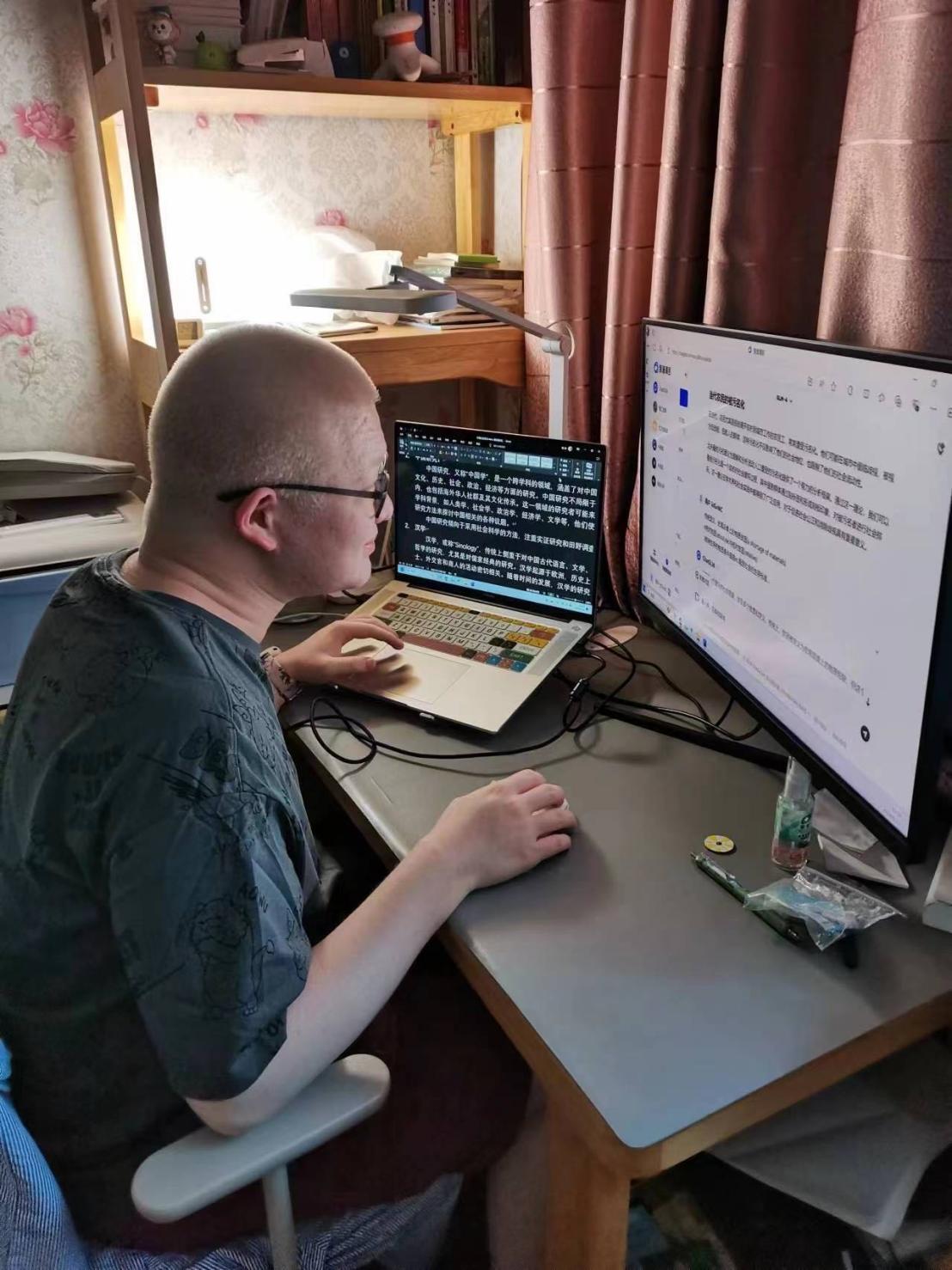 脑袋和课桌近乎平行、眼睛和书本距离10厘米,在2023年6月8号前的4664天里,视力一级残疾的孙旭一直这样学习。2023年7月25日,孙旭收到了嘟嘟成人网 社会学大类的录取通知书。10年盲校的生活正式结束,等待他的是充满未知的大学新生活。