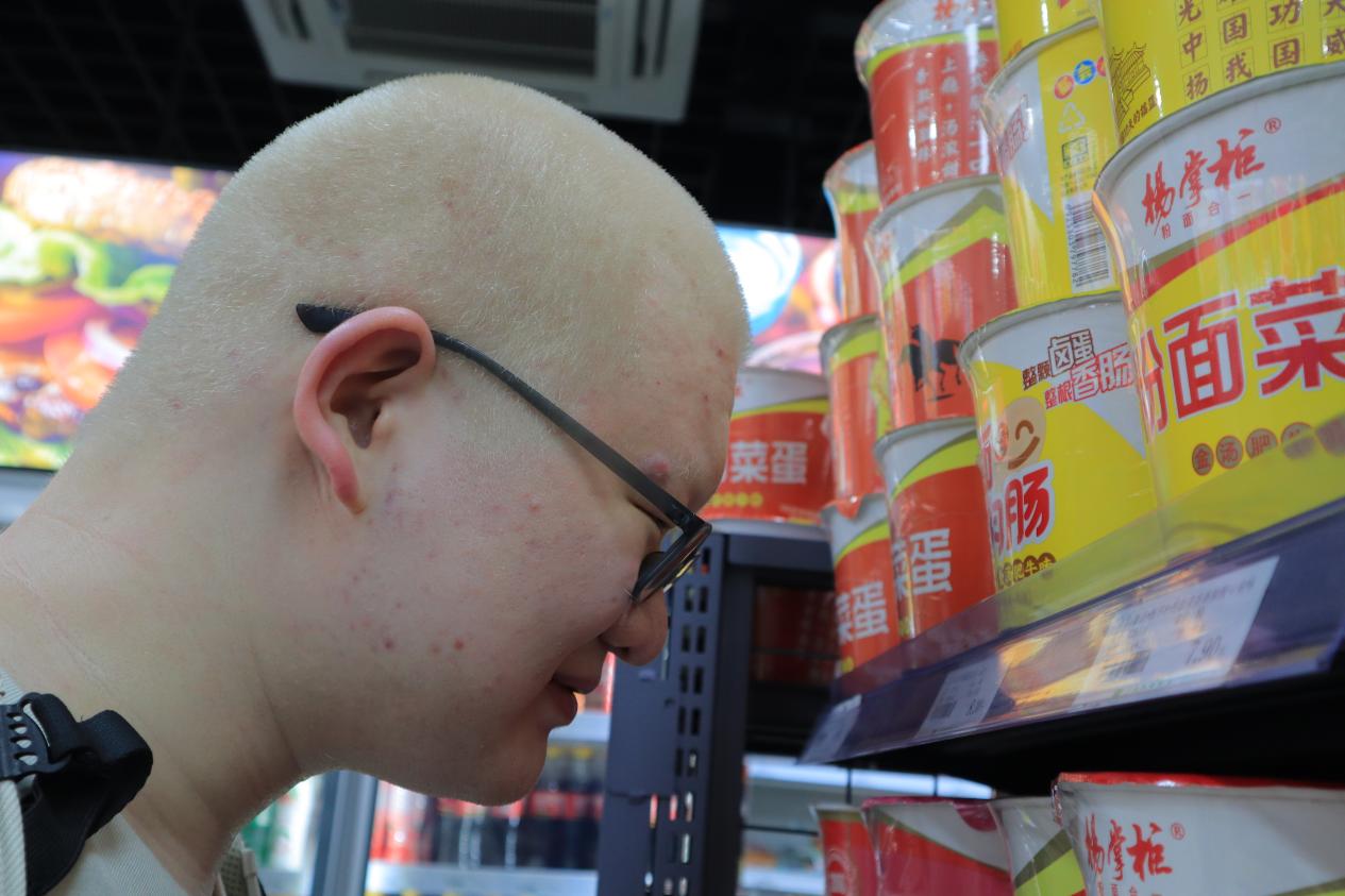 去学校超市购物时,孙旭也需要靠近商品标签才能看清价格。这个对视力正常者来说过于接近的距离,也只够他看清标签上较大的价格,“看不清标签上的商品名称”。