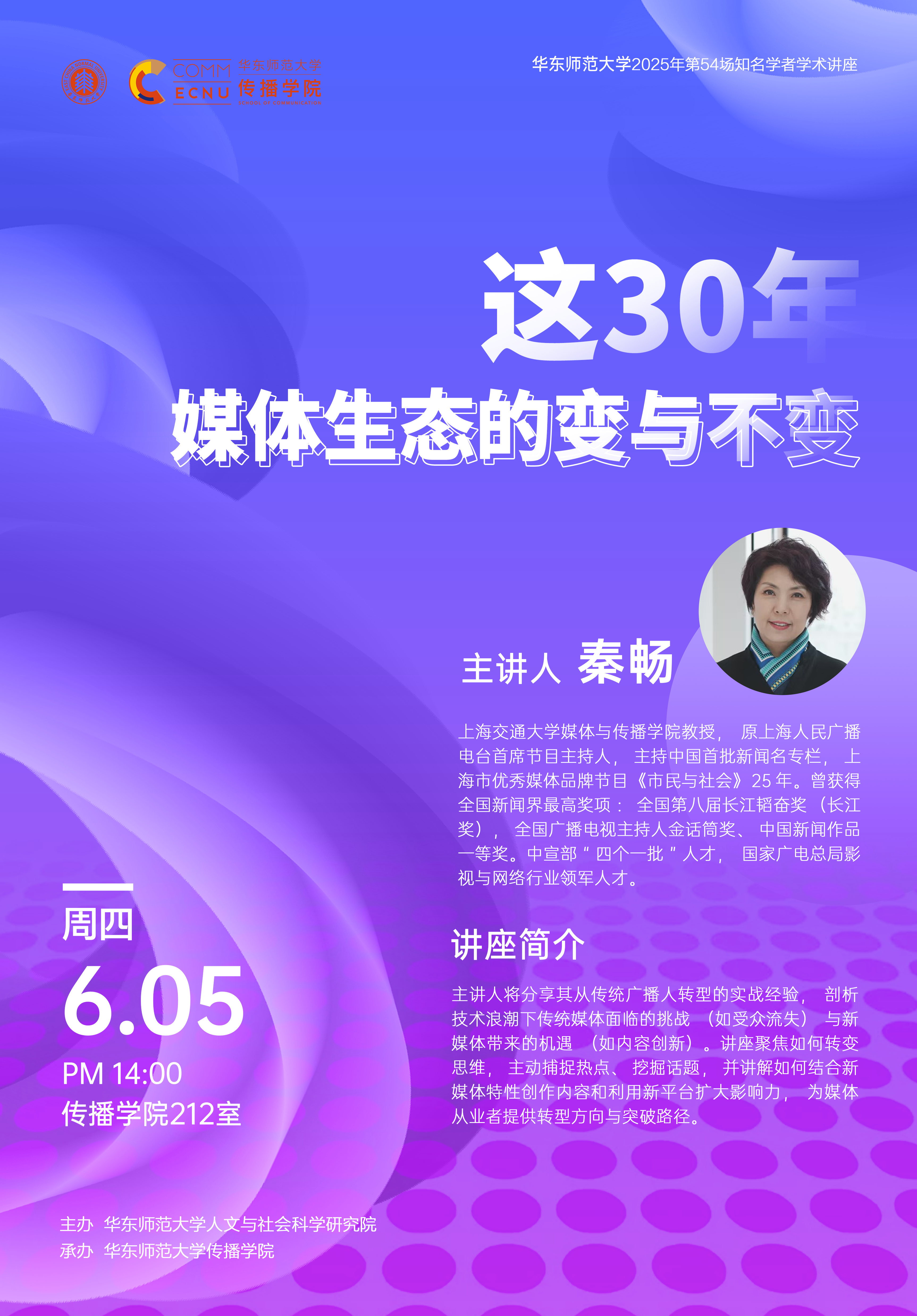 主讲人将结合自身从传统广播人转型的丰富经历为蓝本,深度剖析远程工作及媒体转型进程中的种种。在技术浪潮冲击下,传统广播面临受众流失、传播模式固化等挑战,而新媒体崛起又带来内容形式创新、传播范围拓展等机遇。她将讲述如何敏锐捕捉热点,不再被动等待,而是主动挖掘话题与兴趣点,实现从传统媒体思维到新媒体思维的转变。她还会分享在内容创作上,怎样结合新媒体特性打造吸睛作品,在运营推广方面,如何借助新平台扩大影响力。此次讲座将通过大量实战案例,为媒体从业者及研究者答疑解惑,共同探寻媒体行业在新时代的发展方向与突破路径。