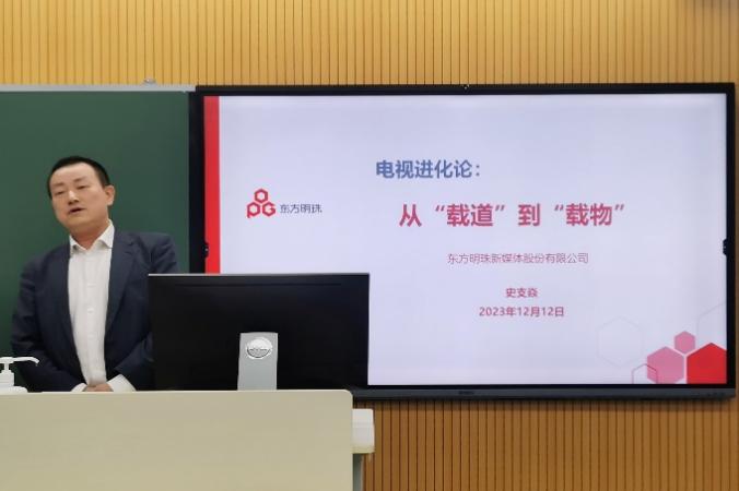 12月12日下午,上海东方明珠新媒体股份有限公司高级副总裁、党委委员;兼东方有线网络有限公司党委书记、董事长,上海文广互动电视有限公司董事长;校友史支焱从电视的演进历程分析电视的颠覆性特征,讲述电视从信息传播与娱乐教化进化为“容载万物”的平台化载体的过程。本次讲座是2023-2024学年秋季学期“创意经济与传播专题讲座系列”的第六讲。
