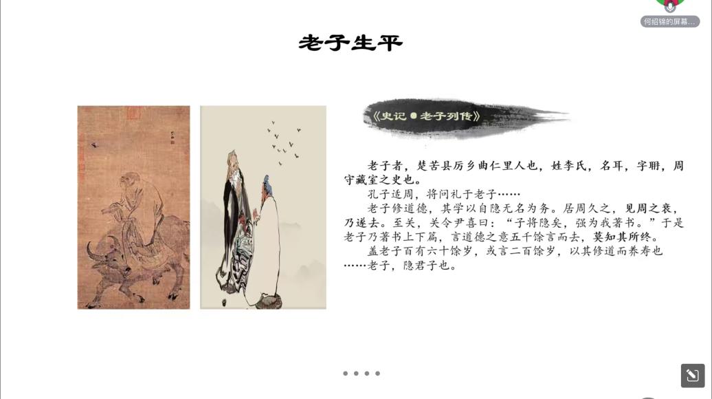 第一部分,如何认识老子?何绍锦对老子的生平进行了简单介绍。关于老子生平的考证很多,但基本只是猜测。最有价值的是司马迁对老子的介绍:“老子,隐君子也。”值得注意的是,隐士并非指向特定客体的符号,而是被共享的象征的符号。