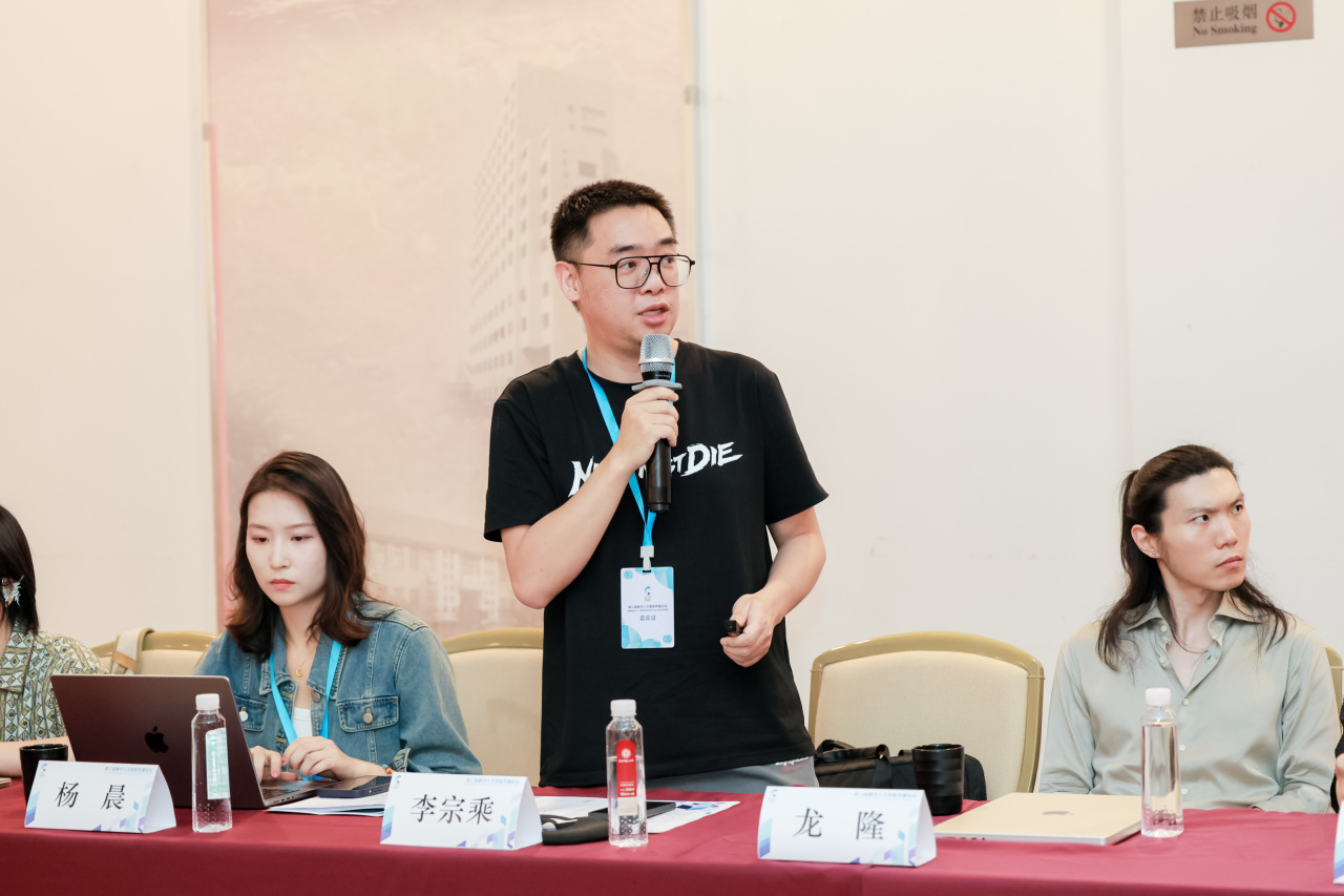 分论坛二由朱生坚主任、于晶副院长主持,冯静研究员、周春玲主任点评。上海广播电视台尚世影业总经理助理、国家一级导演崔轶从VR电影创作实践出发,分析了VR电影导演在叙事、拍摄技术和观众体验等方面面临的挑战;再伸科技创始人司禹聚焦AI引擎对沉浸式交互内容叙事结构的影响,探讨了AI技术如何重塑沉浸式故事的呈现方式;纽约Cubicten佰拾创意科技创始人龙隆则从感官包裹到行为参与的角度,展望了沉浸式体验的未来发展方向,强调交互性在沉浸式内容中的重要性。青年学者们对“沉浸性”的多元形态、VR体验、文博空间、数字具身等前沿议题的探讨,不仅丰富了沉浸性研究的理论维度,更为实践创新提供了重要参考。