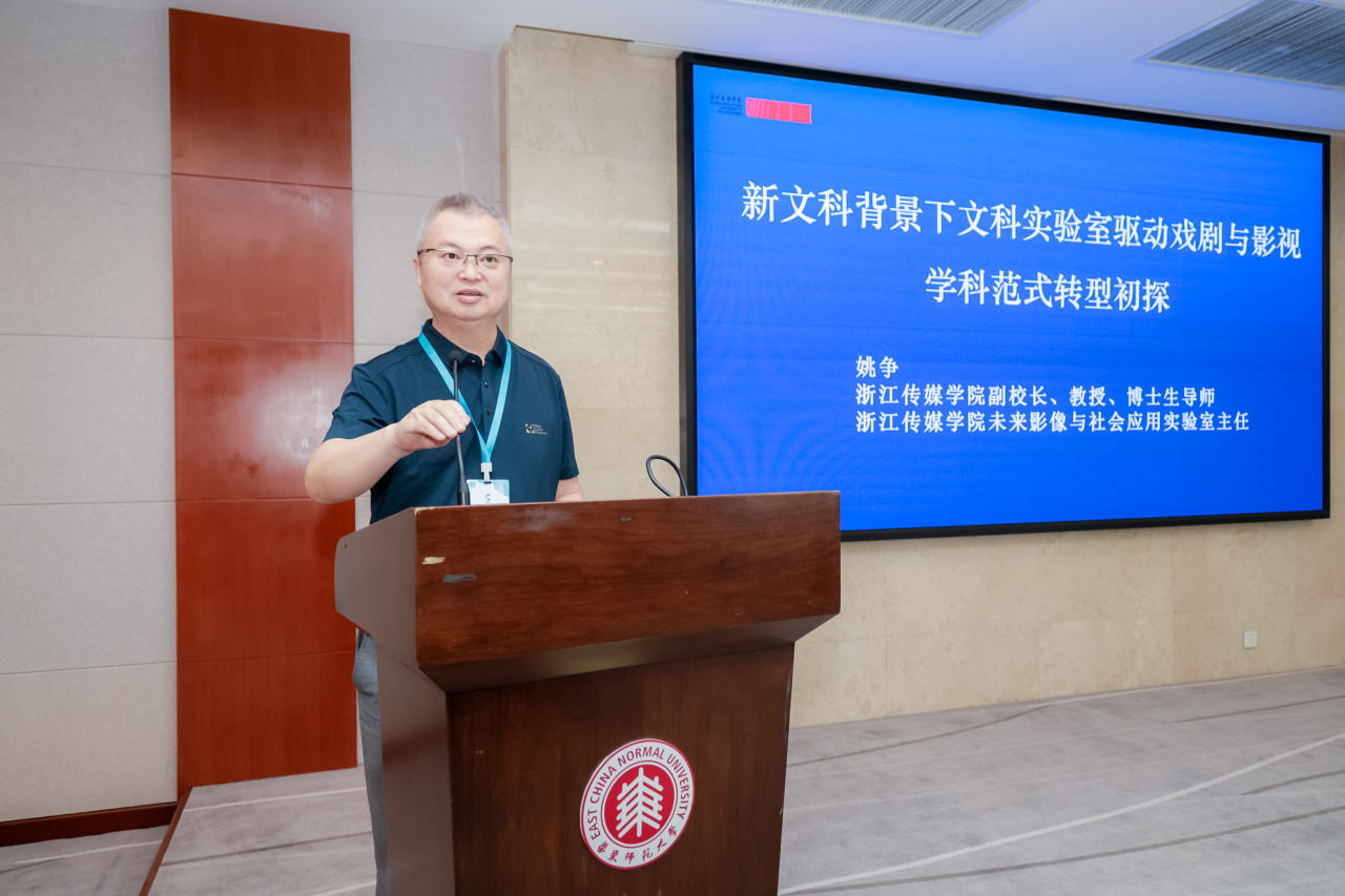 主旨发言环节由广播电视学系系主任钱春莲主持,专家学者们围绕主题分享了一系列前沿观点和研究成果。中国高等院校影视学会会长丁亚平教授深入分析了数智语境下戏剧影视知识生产、传播与消费的新特征,阐述了跨学科融合对戏剧影视学科发展的推动作用,强调了在数智时代重新审视和构建戏剧影视学科知识体系的重要性以及这一过程所面临的挑战与机遇。浙江传媒学院副院长姚争探讨了 “新文科背景下文科实验室驱动戏剧与影视学科范式转型”,阐述文科实验室建设的必要性,以及其对打破学科界限、促进交叉融合、推动学科从理论向实践转变的作用。上海师范大学党委副书记杨海燕聚焦 “加快长三角地区一体化建设,激发影视产业协同发展新活力”,分析区域影视产业发展现状与优势,提出一体化建设带来的机遇挑战及协同发展策略。上海戏剧学院电影学院院长厉震林以 “像熟悉艺术一样熟悉人工智能” 为题,阐述人工智能在戏剧影视领域的应用现状趋势,强调创作者应深入了解掌握人工智能技术,平衡其与人类艺术创造力的关系。复旦大学中文系教授杨俊蕾从视觉-智能驱动的视角出发,阐述了 AI 技术在戏剧影视创作、教学与研究中的多维度应用,探讨了 AI 多场景应用对文科实践的变革与创新。