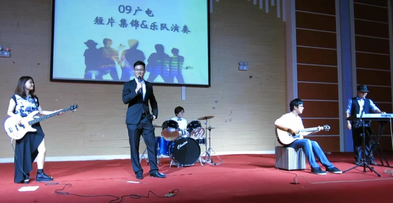 为了给自己的梦想交出一份漂亮的答卷,金祎和学院另外四个志同道合的同学,一起组建了一个乐队,由他担任吉他手,其余队友分别负责主唱、贝斯、电子琴和鼓。在广电专业学到的理论和技能,让他在声音处理、舞台编排等方面游刃有余。这个小小的乐队在地下录音室等各个角落里突击排练了两个月,睁眼闭眼间尽是曲谱上的音符在跳动,奔波于论文与求职面试间的脚步声也打起了乐曲的节奏。终于,金祎和同伴们一起顺利地将乐队歌曲带上了毕业晚会的舞台。