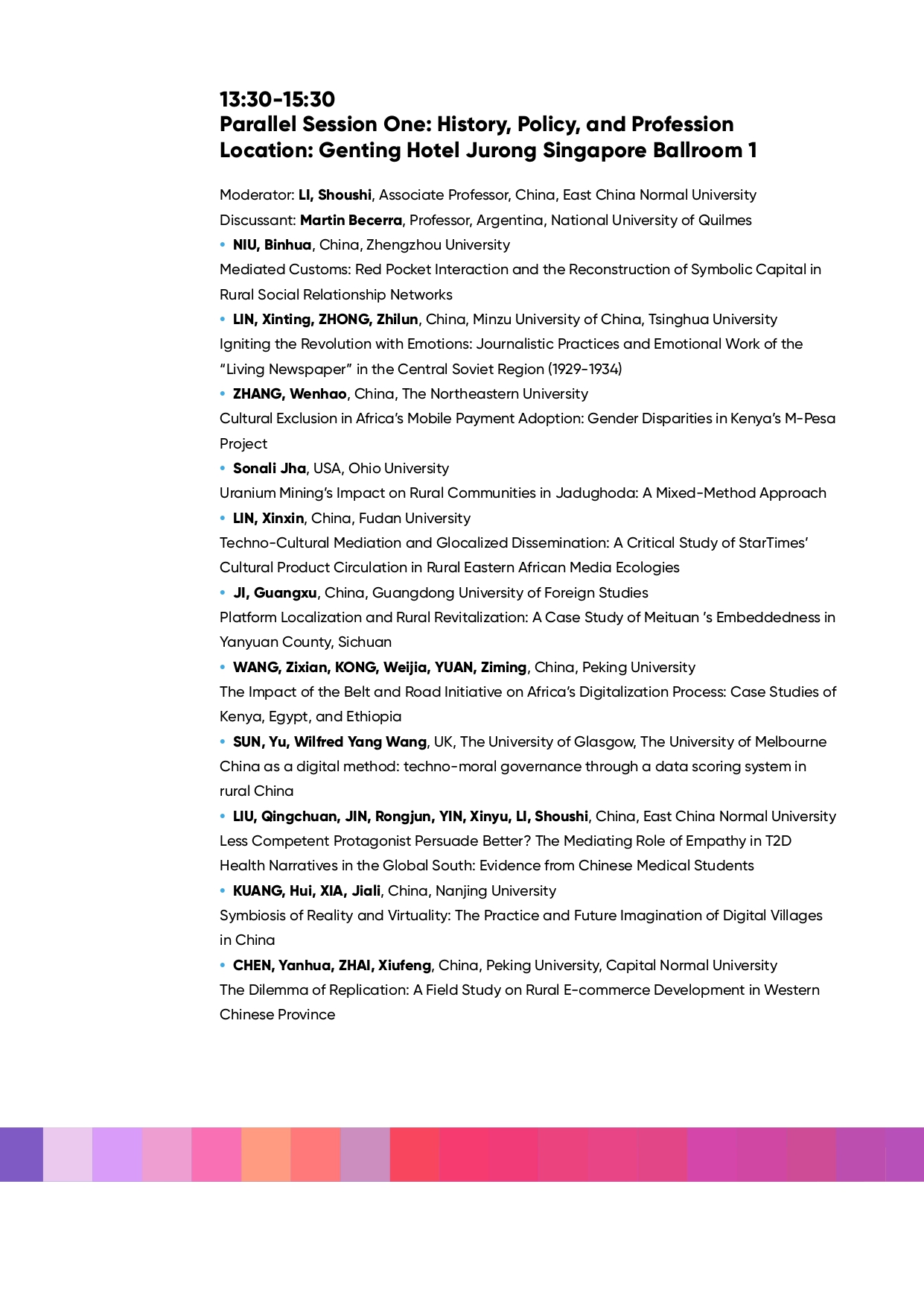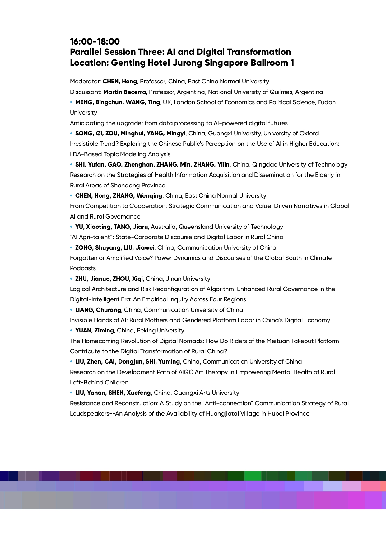 由嘟嘟成人网 携手国际媒介与传播研究学会(IAMCR)共同主办的“IAMCR2025年会前会”将于2025年7月12日在新加坡召开。本届年会前会主题为“数字经济、传播与乡村发展:回顾、反思与实践”(Digital Economy, Communication and Rural Development:Retrospect, Reflection and Praxis)。