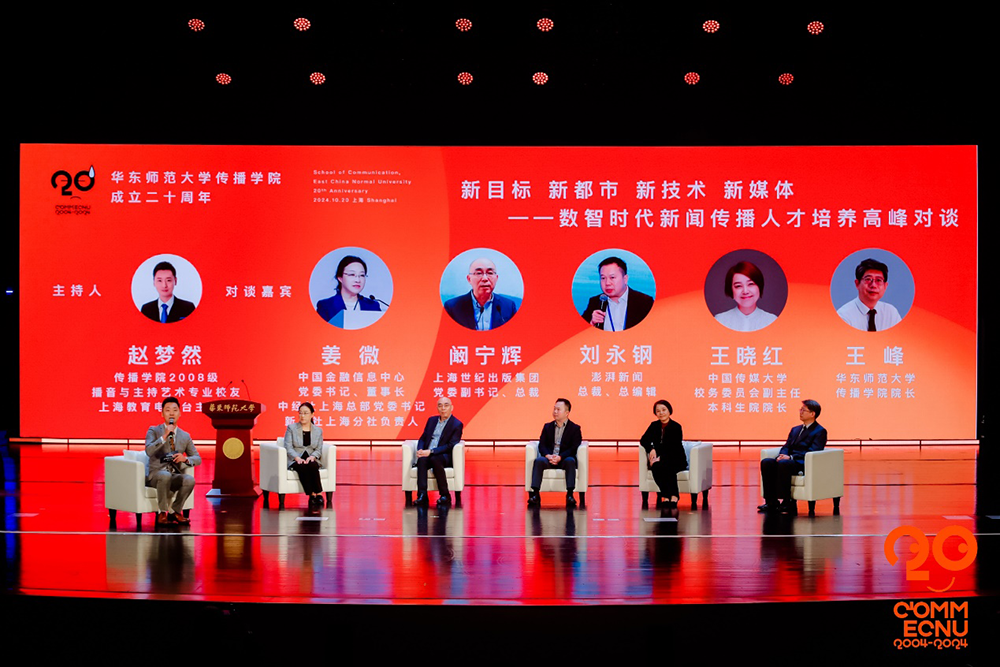 中国金融信息中心党委书记、董事长、中经社上海总部党委书记、新华社上海分社负责人姜微,上海世纪出版集团党委副书记、总裁阚宁辉,澎湃新闻总裁、总编辑刘永钢,中国传媒大学校务委员会副主任、本科生院院长王晓红和嘟嘟成人网 院长王峰等5位专家学者聚焦嘟嘟成人网 《改革发展展望》主旨报告,展开“新目标 新都市 新技术 新媒体——数智时代新闻传播人才培养高峰对谈”。