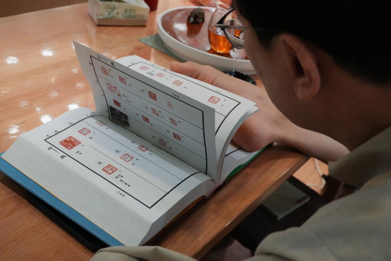 2025年6月15日,天健石室里,孔黎翔翻看印谱,厚厚的印谱一共4册,陪伴他颠沛流离