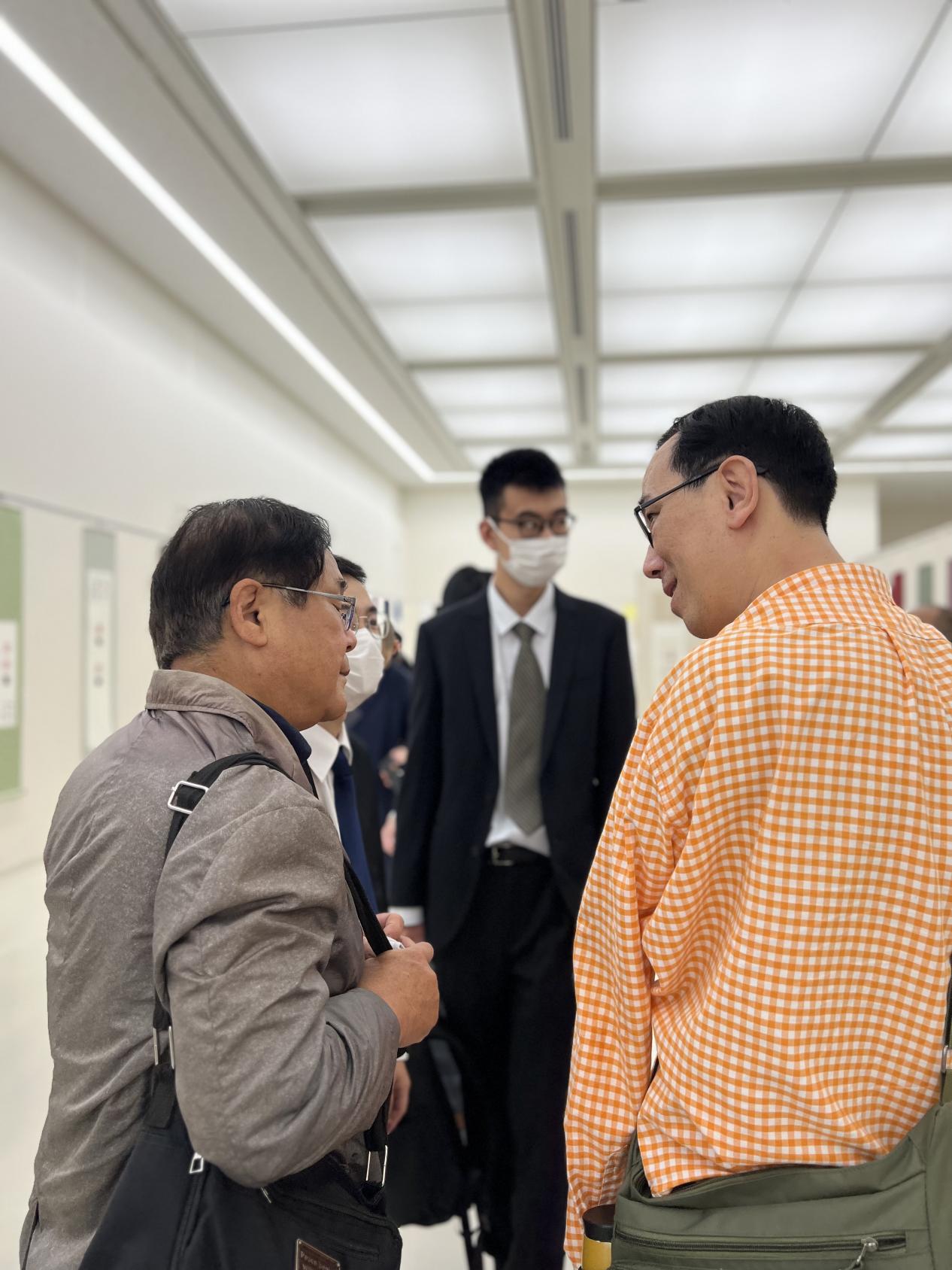 2025年4月,孔黎翔在东京活动时,与同行交流(右为孔黎翔,受访者供图)