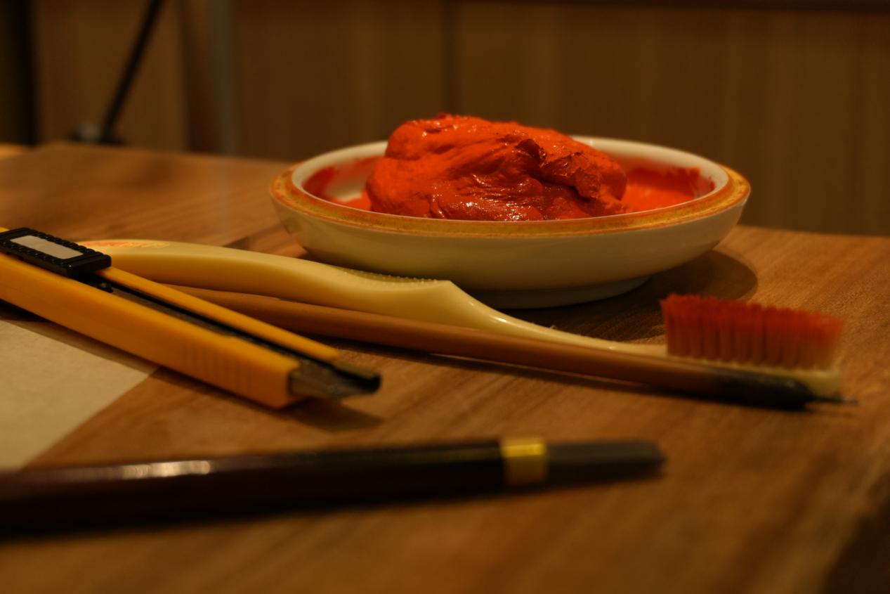 孔黎翔将近一米八的个头,常年在矮桌上以一双脚治印,对颈椎、腰椎皆是损伤。为精益求精,一盏灯常常燃至深夜,长此以往,对视力的消耗更是不可估量。步入知天命之年,孔黎翔的眼睛已经有了老花,刻章的时候,需得把眼镜摘掉,才能看清石上脉络。“我知道我的艺术生命没有别人那么长,所以说我尽可能在我生命力最旺盛的时候,给朋友多做点东西。”