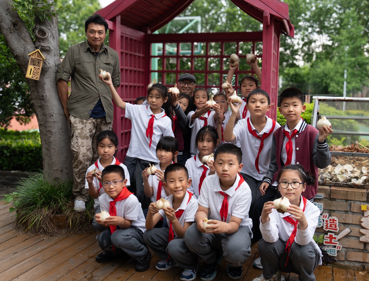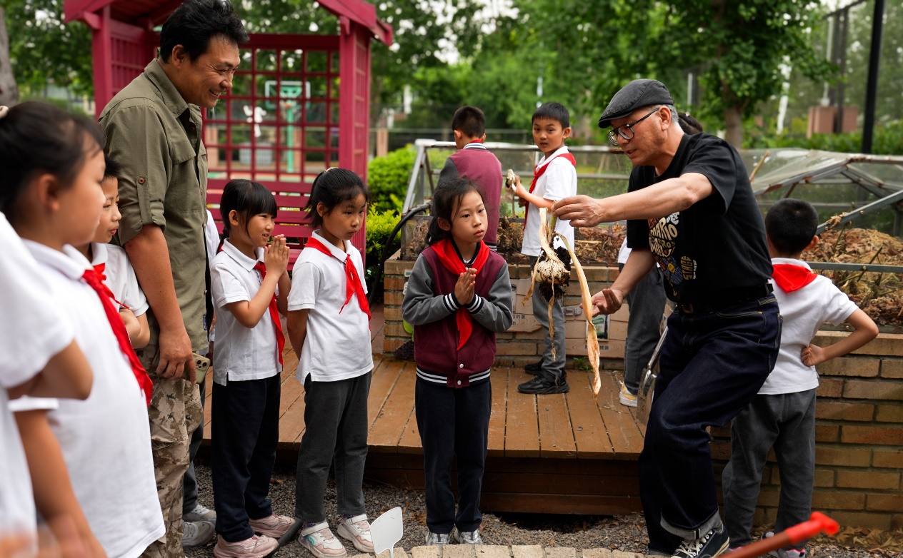2025年5月28日,程融告诉学生们将大花葱的根部带回家中,放在风干处保存,等到来年再种。