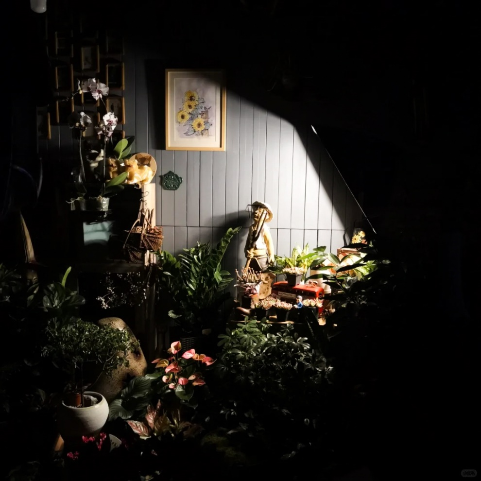 2025年5月15日20:30,“花到家·富贵花鸟艺”店关门后,只留了一盏灯照明