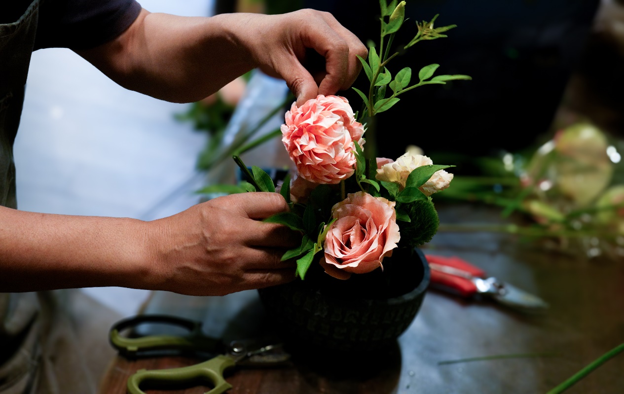 也正是因为花艺的手艺独特性,程融虽然每天关着门做生意,但依然客源不断,还拓展了上门插花、企业周花、现场布景等项目。