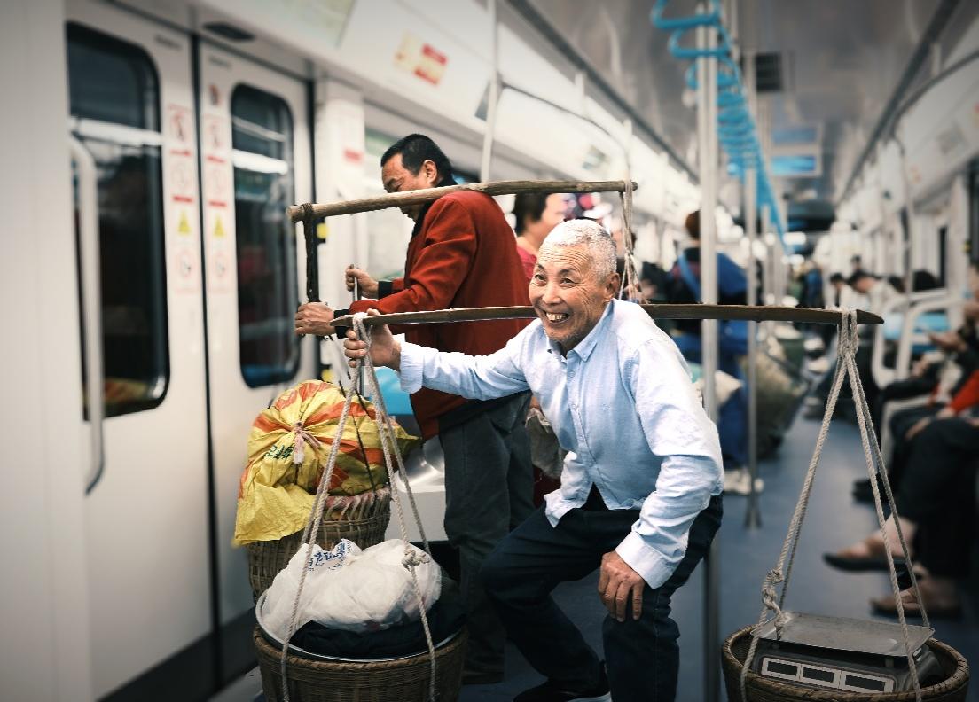 二、换乘路上:背篓与城市的 “碰撞” 与协同