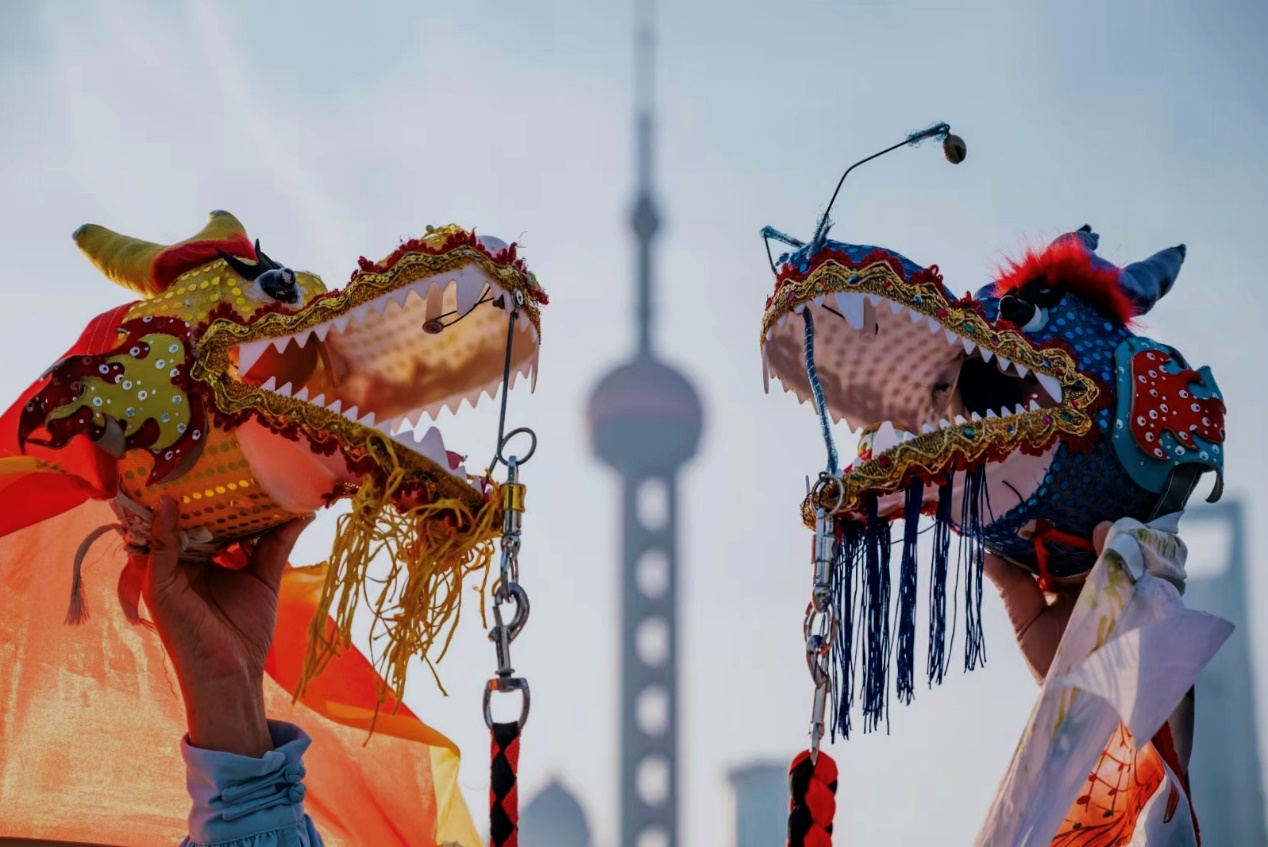 “在东方明珠对岸舞龙,有种龙在戏珠的感觉,寓意‘夺珠争吉’!”她的话还回荡在耳边。