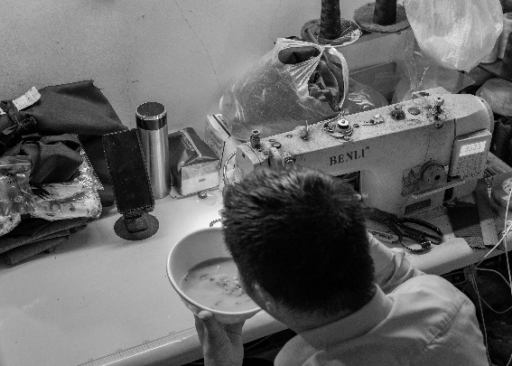 “吃面方便啊,十几分钟搞定。”他说着用筷子拨拉几下,端到缝纫机前就开吃了。吃完面,他顺手把碗搁进水池,没多洗,回头又钻进布料堆里继续工作。整个午饭从准备到吃完,不过十五分钟。