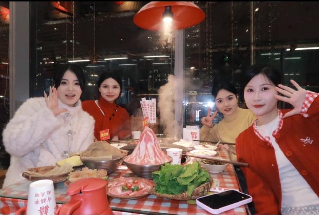 林芳在与朋友们聚餐(受访者供图)