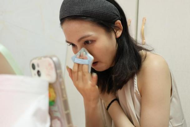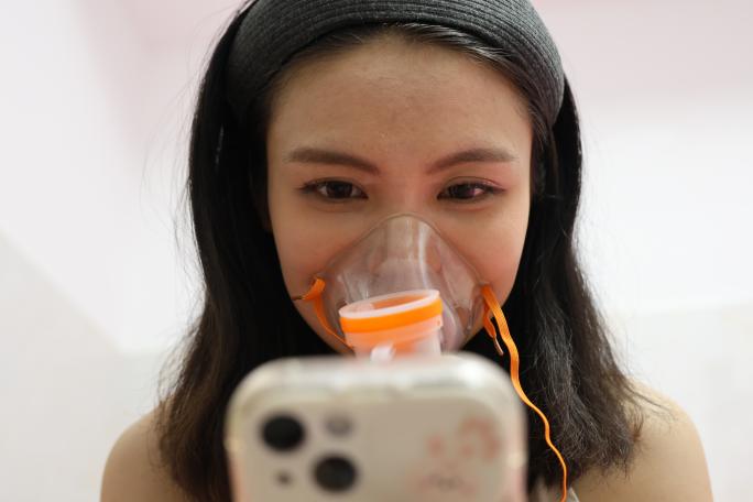 这一场直播结束后,林芳意识到自己的嗓子状态堪忧,“每说一句话,嗓子和肋骨都在同时作痛”。回到家,她拿出了一整套雾化设备,装入从医院里开回的药品,给自己做了一场20分钟的雾化。她有一下午的时间来补妆、补眠、调整状态,下一场直播将于晚上8点准时开始。