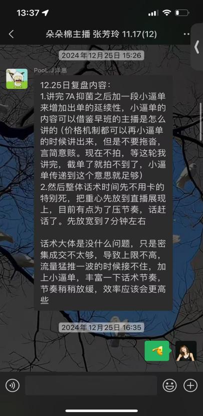 公司的运营是和主播们交流最多的人,他们需要在每次下播后为每位主播发来复盘及建议,以提升直播的商品成交转化率。(受访者供图)