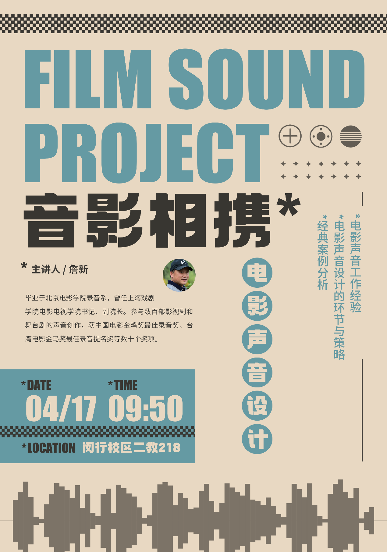 詹新教授将以其丰富的电影声音工作经验,结合多部经典电影案例,来分析阐述电影声音设计的各个环节及策略。