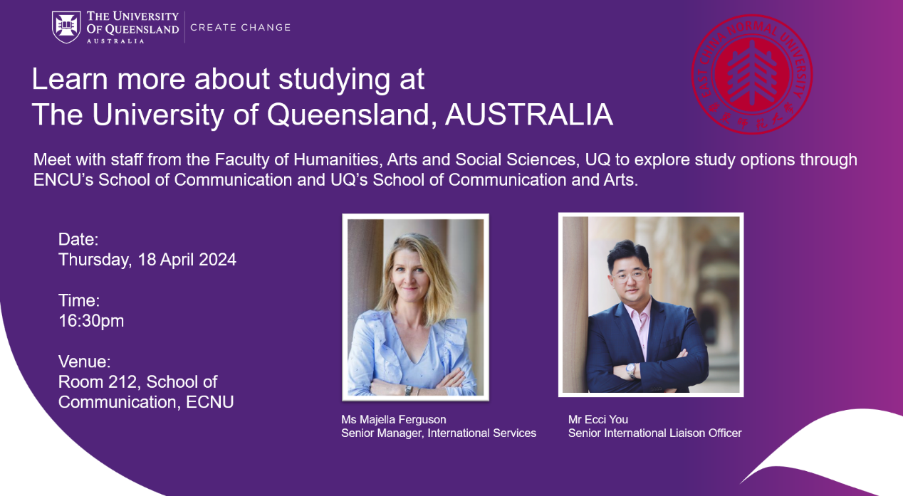 项目采取“2+2”的形式,华东师大嘟嘟成人网 本科学生可于大二期间申请,成功录取后于大三大四学年赴昆士兰大学学习,在达到双方的毕业要求之后可以分别拿到两校的学士学位。